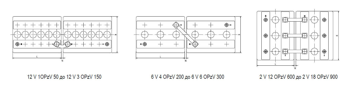 Горизонтальный режим работы | Для этого разрешается применять только специальный тип OPzV “горизонтальный”. Его конструкция и технология изготовления рассчитаны для этого. |