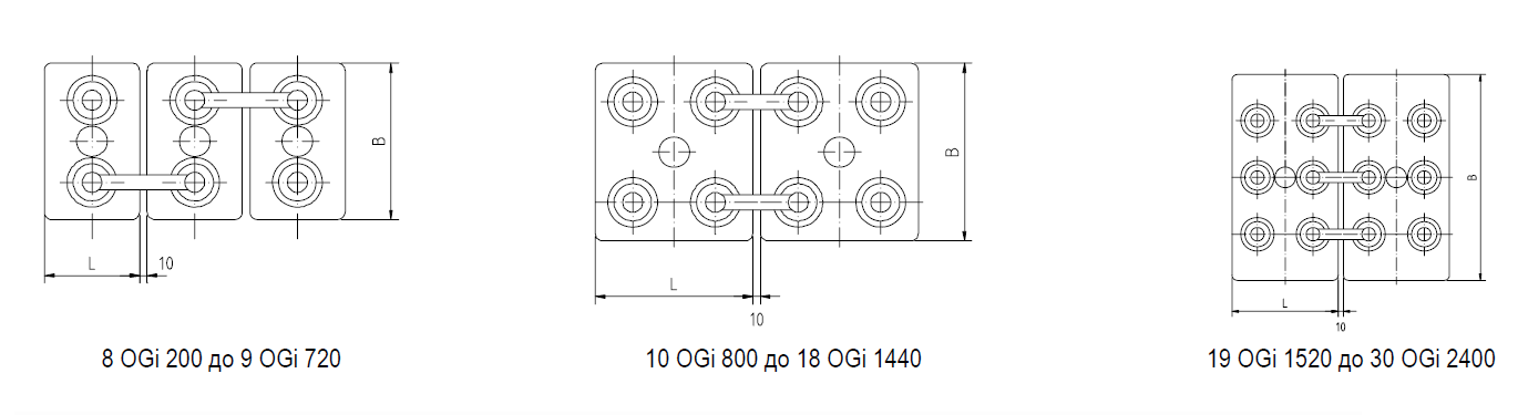 Соединитель (перемычка) | гибкий изолированный медный кабель с поперечными сечениями 25, 35, 50, 70, 95 или 120 мм²; по заказу: плоский изолированный медный кабель с поперечными сечениями 90, 150 или 300 мм² |